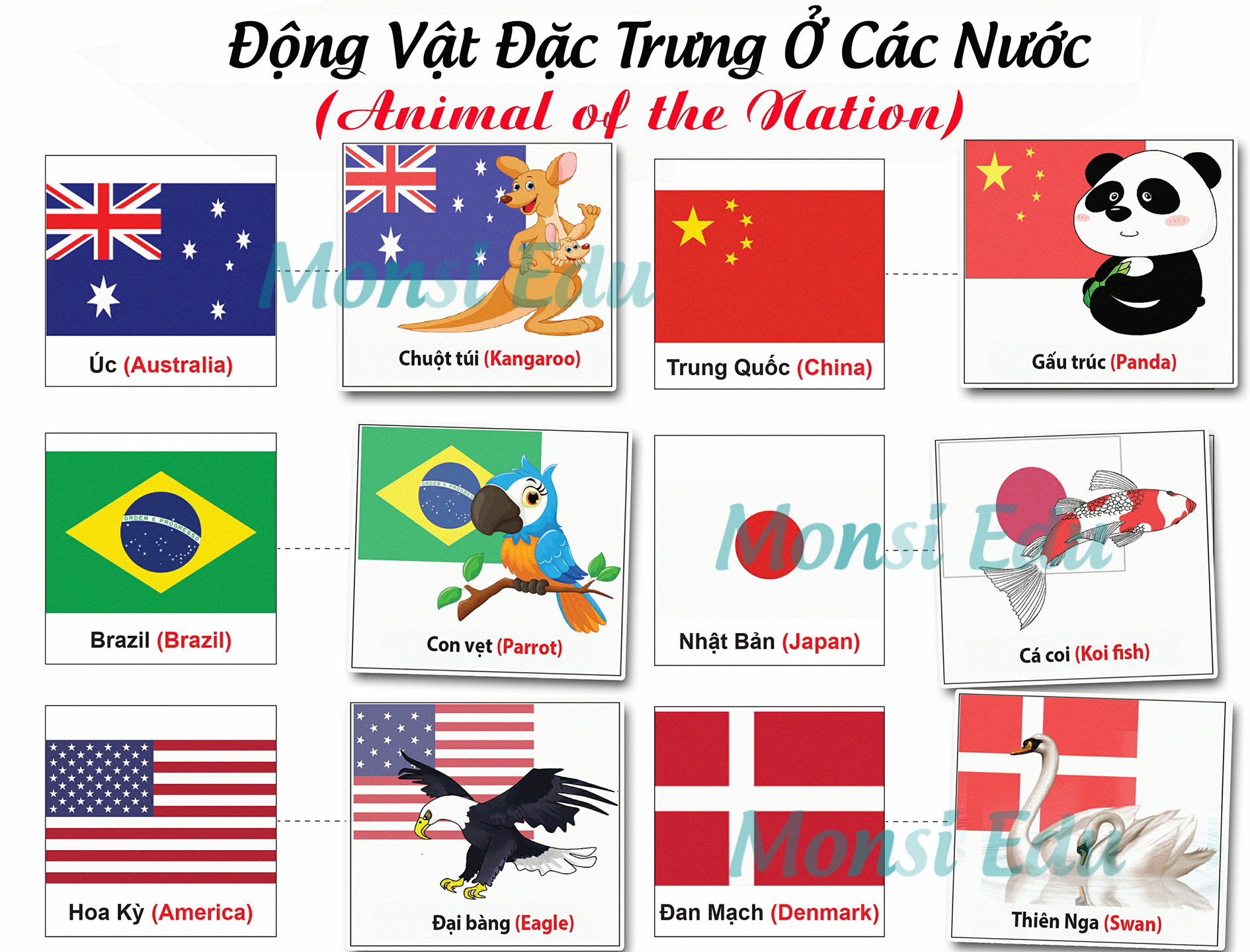 • Động vật đặc trưng của các nước: Gấu trúc ở Trung Quốc, Cá Koi ở Nhật Bản, ….