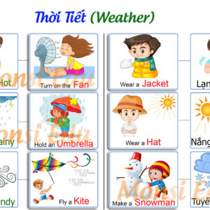 Gồm 20 chủ đề : Các chủ đề về động vật , chủ đề thời tiết, cảm xúc, tính từ đối lập, giới từ, màu sắc, hình học, số … Các chủ đề được trình bày đa dạng : Ghép cặp, Sơ đồ tư duy, Bóng nền, Bóng hình, …
